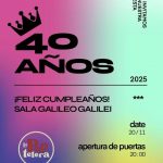 El jueves 20 de noviembre Galileo Galilei celebra sus 40 años de magia y programación estupenda! La Poptelera será la banda encargada de aacompañar esta ceremonia con música en directo.